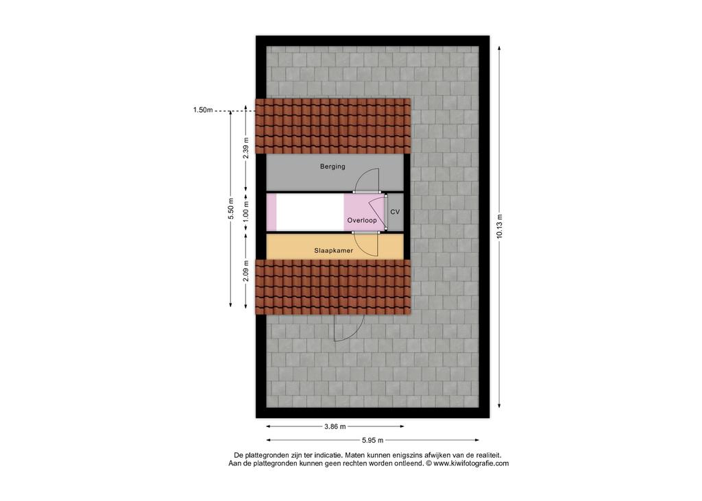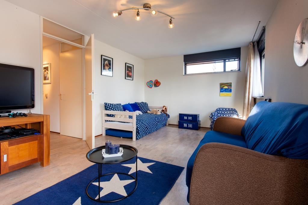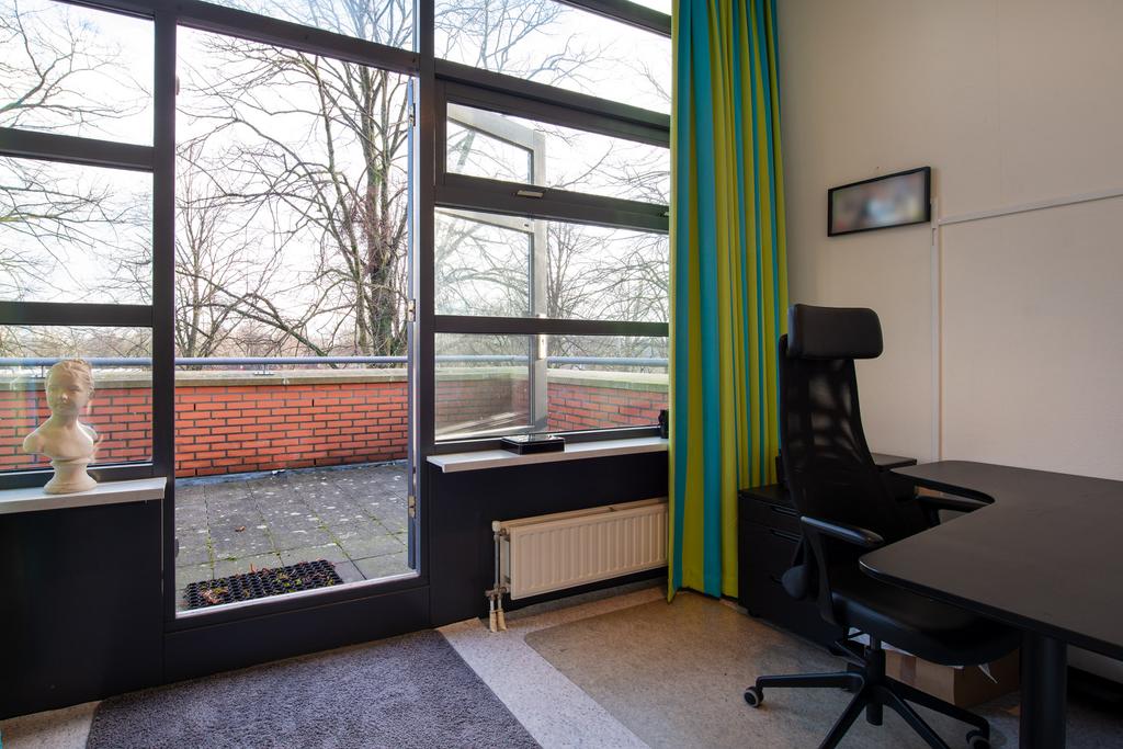 5e slaapkamer annex kantoor (groot ca. 8 m2) met deur naar dakterras.