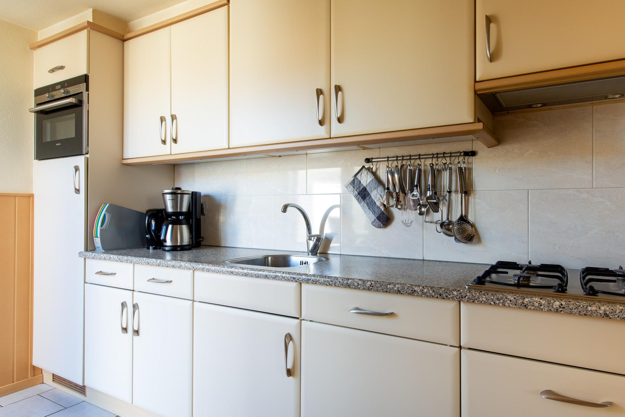 Apparatuur keuken o.a.: vaatwasser (2020), koelkast (2012), combi magnetron (2012), gaskookplaat (1998) en afzuigkap (2020).