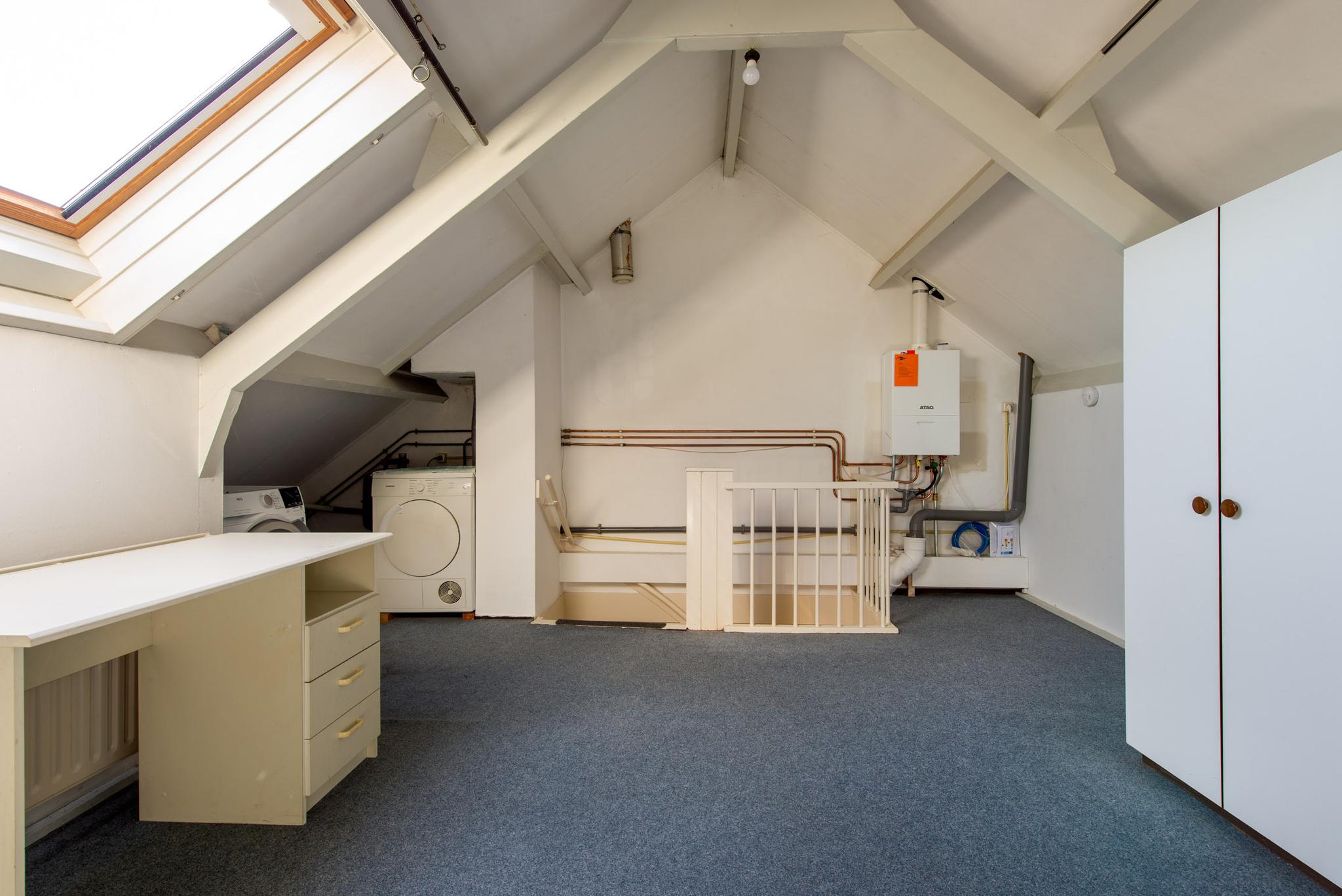 Grote open zolderruimte met bergruimte, CV-combiketel (HR) en aansluiting(en) wasmachine/droger alsmede kleine vliering en mogelijkheid tot 4e ruime slaapkamer.