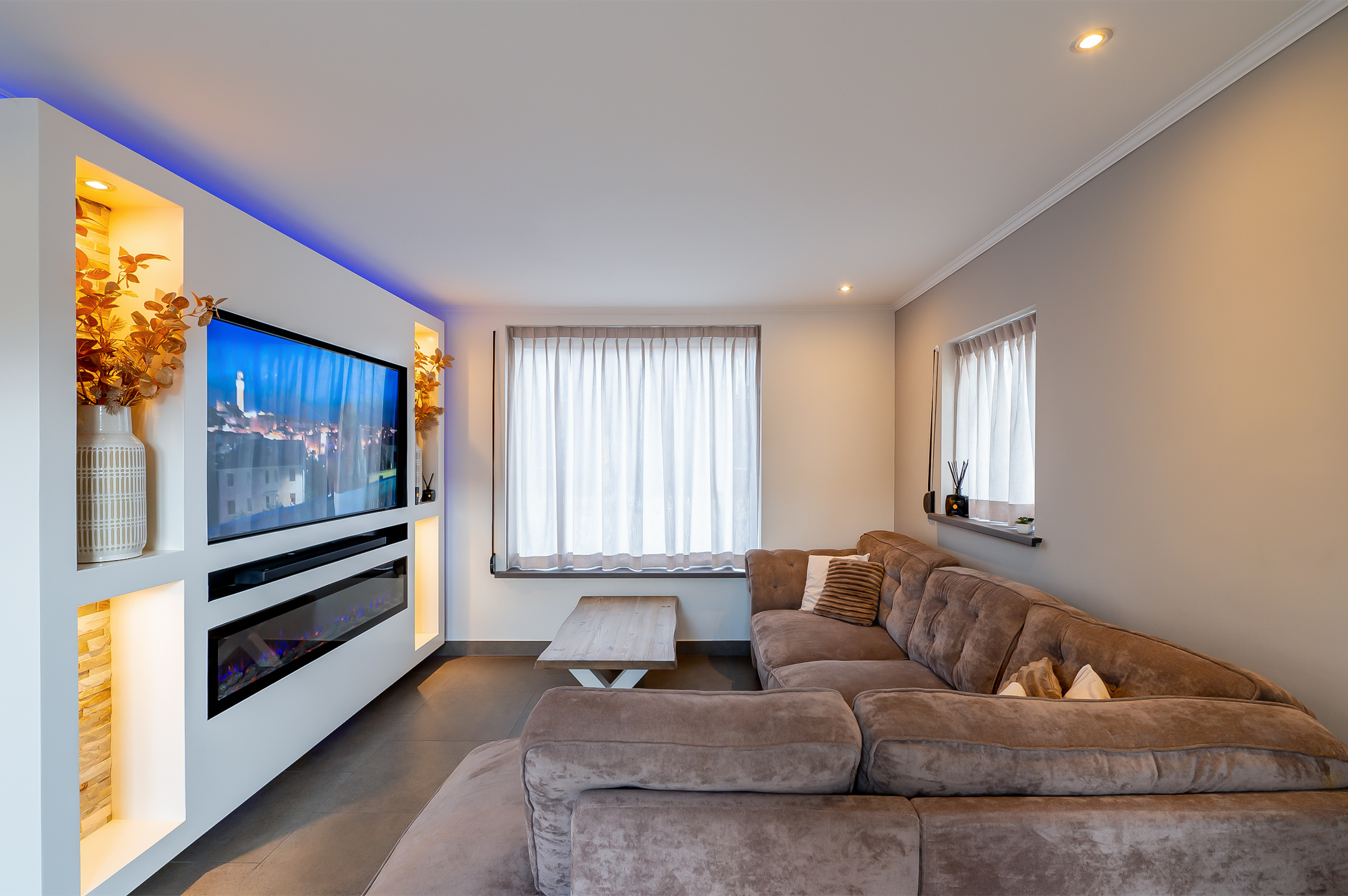 De strak afgewerkte ‘Cinewall’ en rolluiken zorgen voor zowel comfort als luxe.